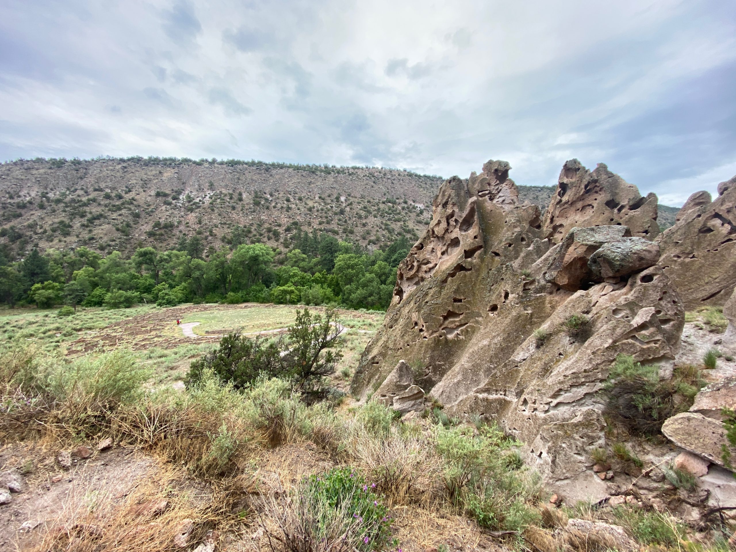 There is evidence of human activity in the area from 11,000 years ago, but these preserved petroglyphs and cave dwellings date from around 1150 to 1600. We started out at the Frijoles Canyon overlook and you could really feel how vast the canyon was.